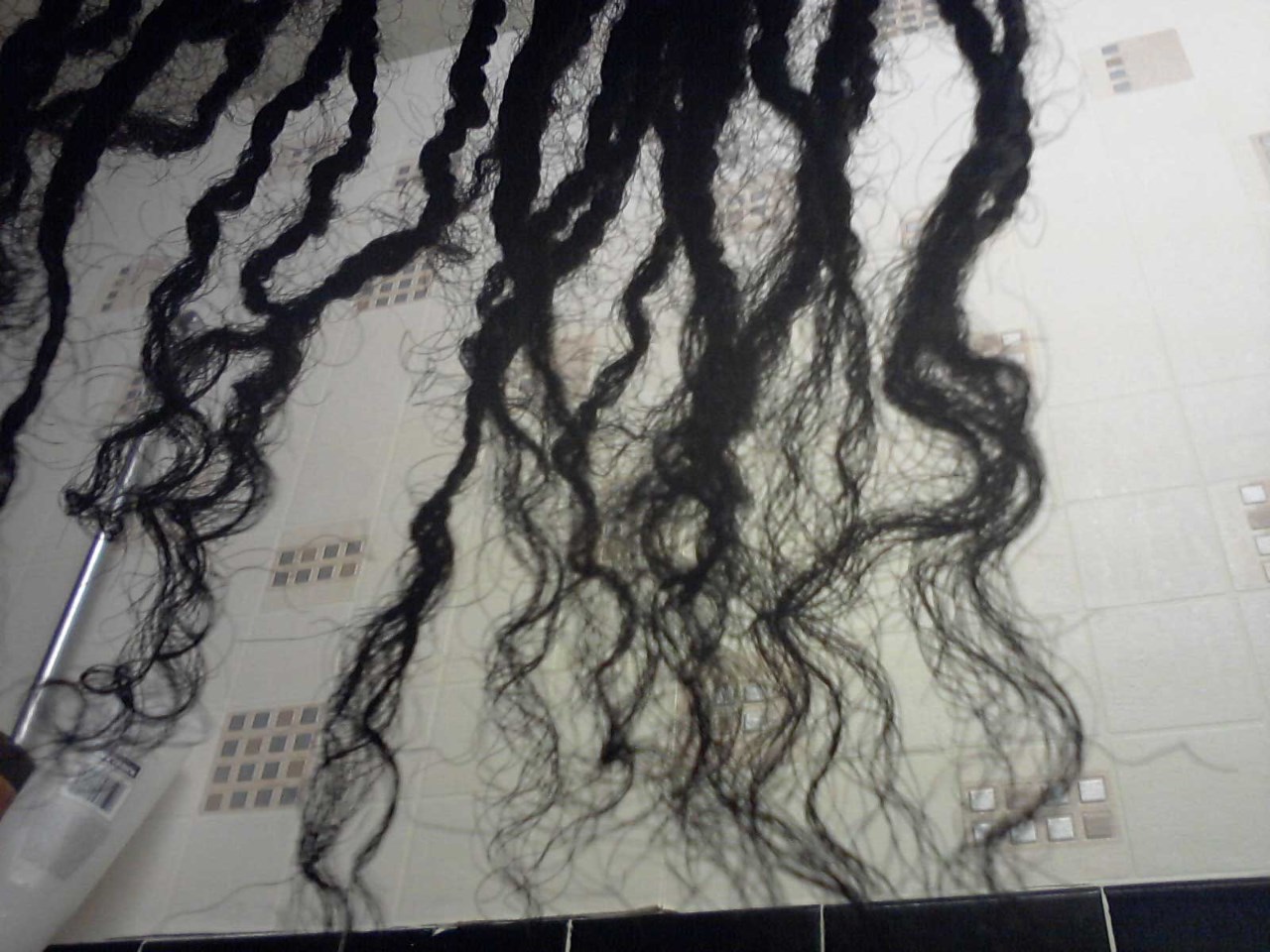 Curl pattern: From Greenbeautychannels complete hair typing system I think my hair is an S and L pattern with some O pattern. She says that if you wet the hair or put gel on it and it shows waves in your hair you have a more S and O pattern and my hair does have waves with gel in so I must have all 3! My strands are not in a very tight pattern as GreenBeauty explains, that these patterns can be quite loose or very tight along the spectrum, mine pattern might be medium tight and can mesh quite badly and break. You can see some of the strands are meshed (top left in the 1st image). It is just quite kinky along the strand not a nice s shape as such. The 2nd photo is one of my twists taken out it looks as if I've got sideburns as well, I'm quite a hairy individual!